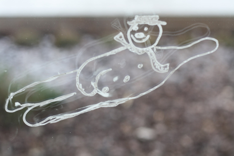 Detail van tekeningen in de kersttijd op het raam van de woonkamer.De snowman is getekend door kleindochter. f/1.3,5 , 1/125 ...